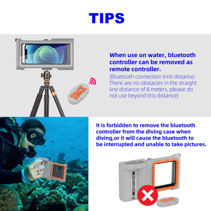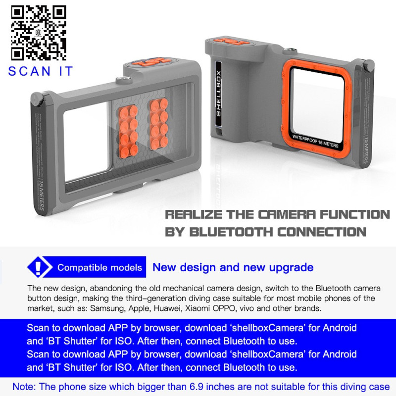 Équipée de sangles pour éviter les chutes pendant la plongée, cette coque adopte une connexion Bluetooth pour la fonction photo, éliminant le besoin d'un design mécanique traditionnel.