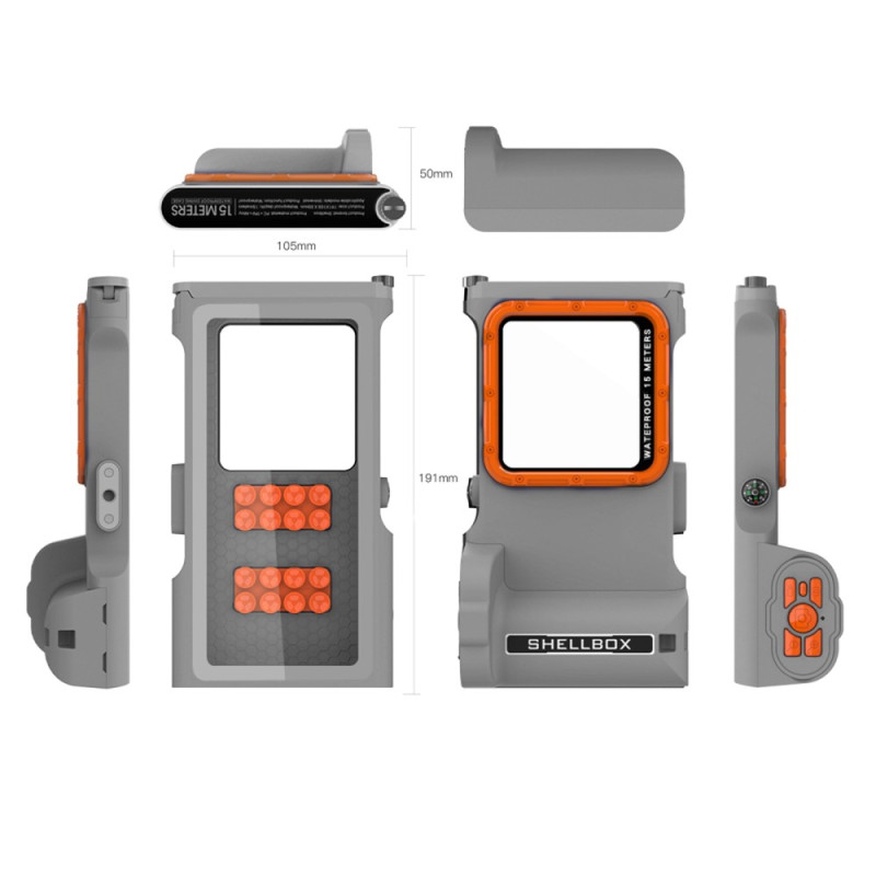 La coque de plongée professionnelle Shellbox offre une protection étanche IPX8 jusqu'à 15 mètres de profondeur pour les modèles iPhone 13 Pro Max, X, XR, et XS Max...