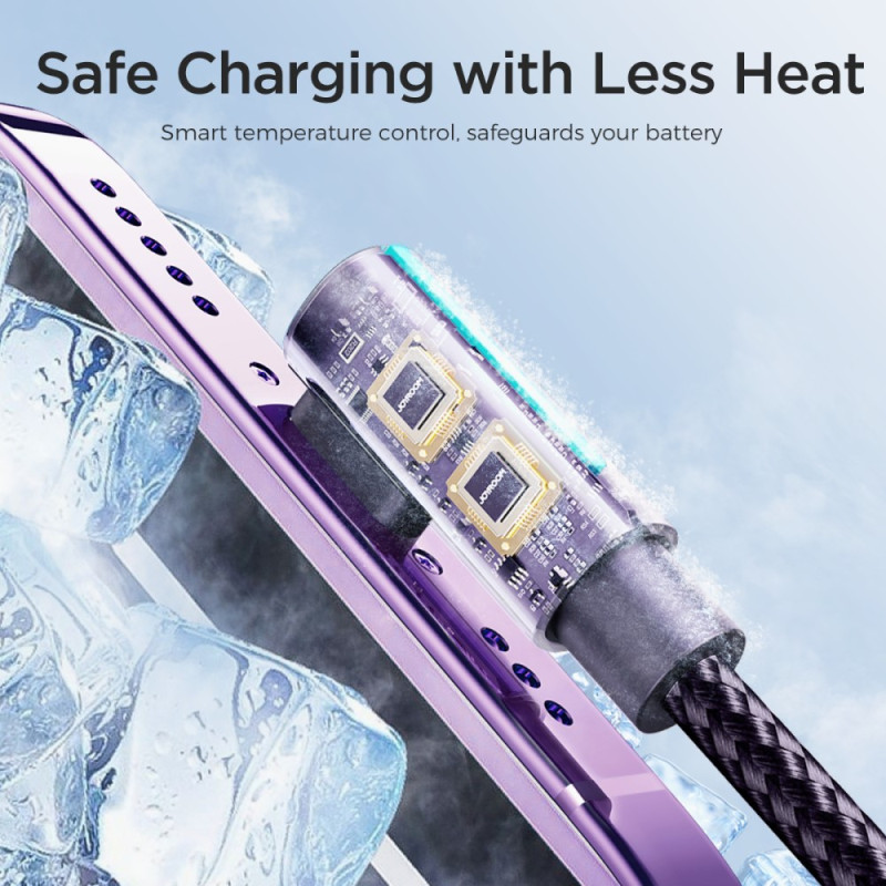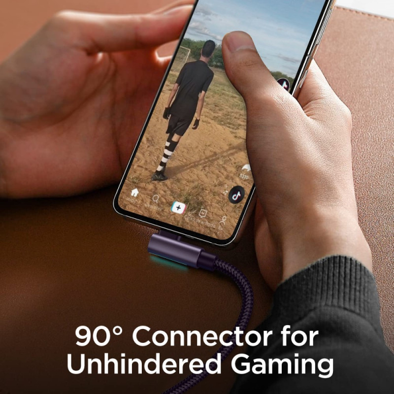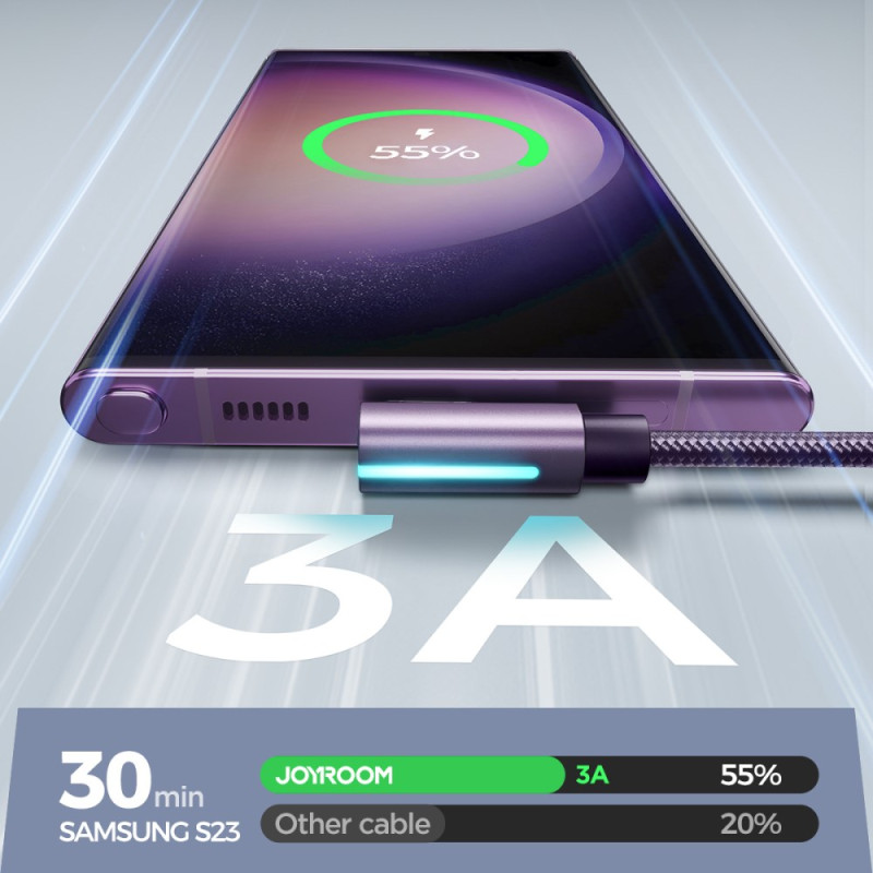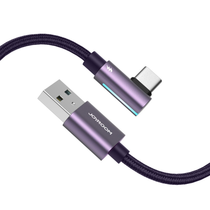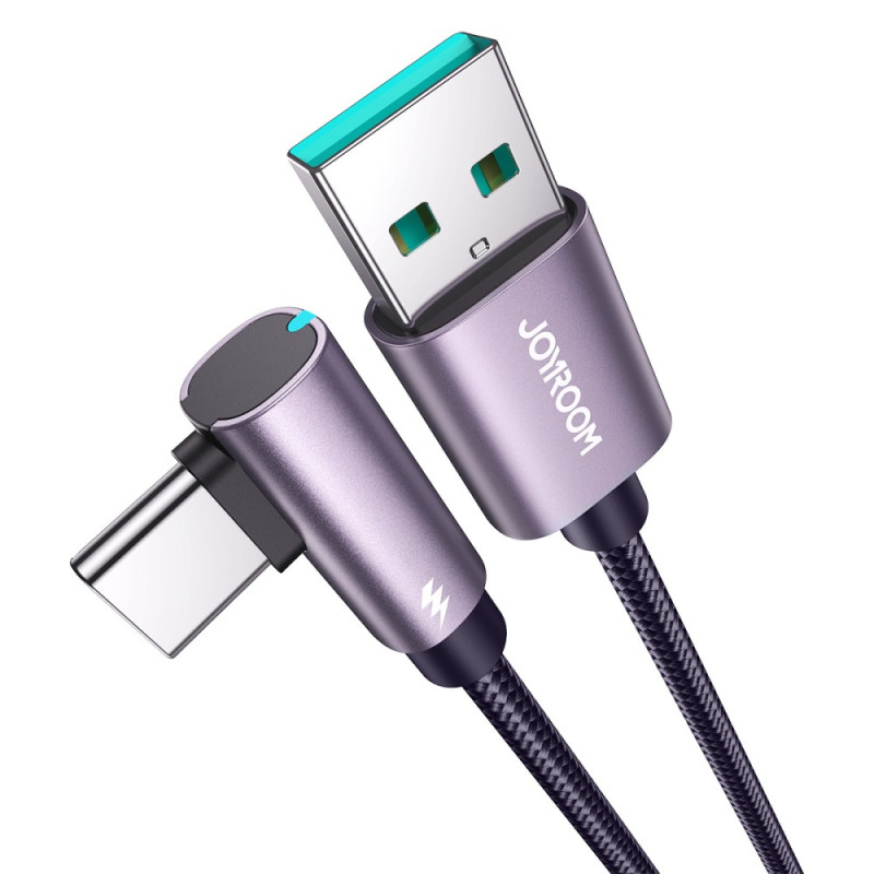 JOYROOM propose un câble de 1,2m avec un embout USB et un embout USB-C à angle droit.