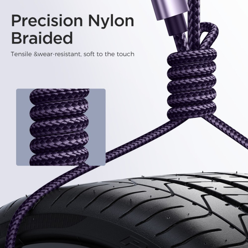Le nylon tressé favorise la durabilité du câble et le protège des torsions et du poids.