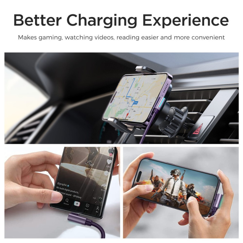 Grâce à un embout en angle droit, le câble assure le maintient du port dans le téléphone et sécurise la transmission de donnés.