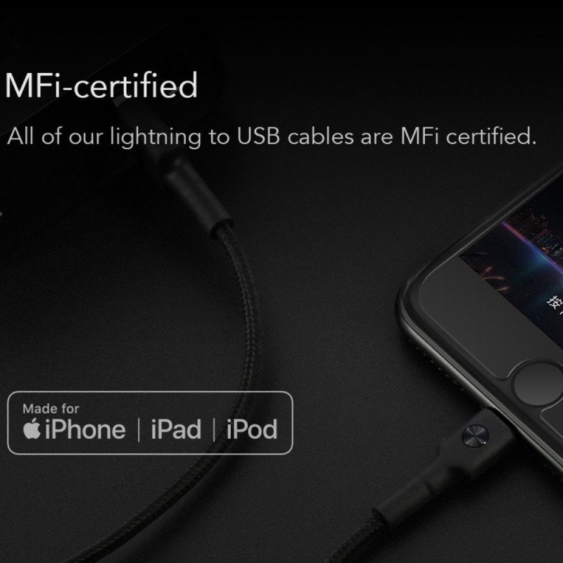 Certifié MFI, ce câble de charge de 1,5m avec cordon tressé sera pratique et efficace avec vos appareils Apple.