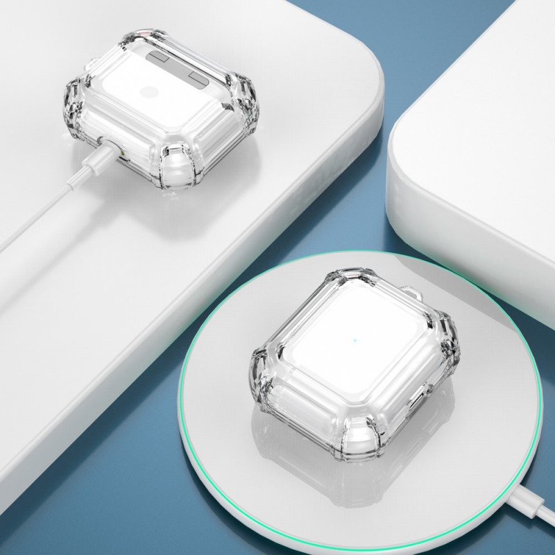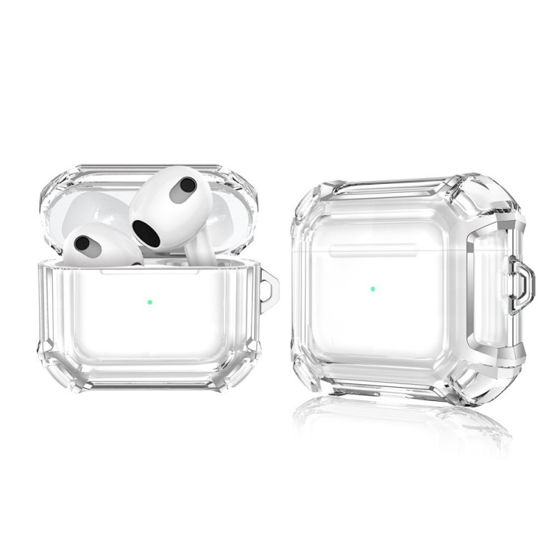 Vos AirPods 3 sont design : protégez-les avec cette coque transparente bicolore qui vient avec un anneau porte-clé.
