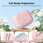 Protégez vos AirPods Pro 3 avec élégance grâce à cet étui en silicone orné d'un motif floral embossé raffiné et d'un anneau métallique doré. Design intégral offrant une protection complète contre la poussière, les rayures et les chutes accidentelles.