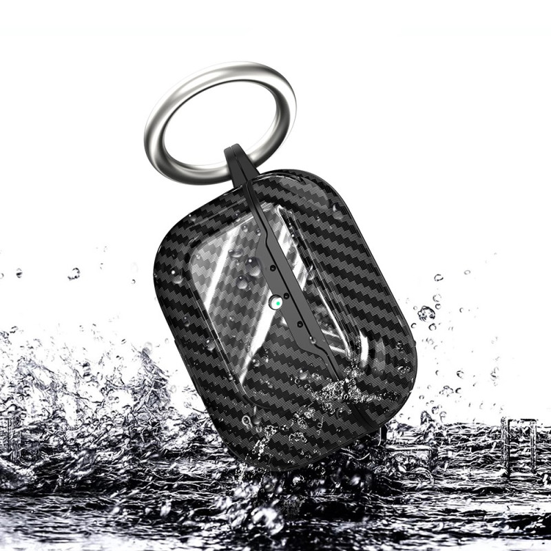 Protégez élégamment votre boîtier de charge AirPods Pro 3 avec cet étui en TPU souple à texture fibre de carbone. Design antichoc avec boucle anti-perte pratique pour accrocher à vos sacs ou trousseaux. Port de charge accessible sans retrait.