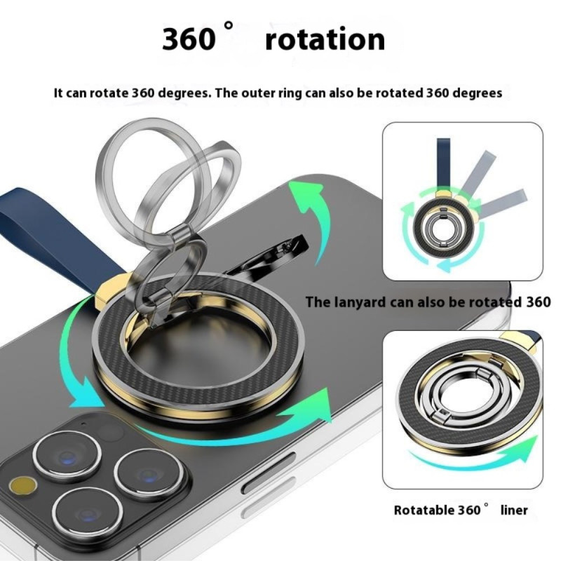 Ce support magnétique rotatif avec anneau allie élégance, confort et performance pour accompagner votre smartphone au quotidien. Conçu en alliage de zinc avec un revêtement en silicone doux, il offre une prise en main agréable et sécurisée. Son système magnétique puissant N52 composé de 18 aimants assure une fixation stable, idéale pour une utilisation mains libres ou comme béquille. L’anneau pivote à 360° et s’incline jusqu’à 110°, permettant de choisir l’angle le plus confortable pour regarder des vidéos, passer des appels ou créer du contenu. Léger et compact, il s’intègre parfaitement à tous les smartphones modernes.