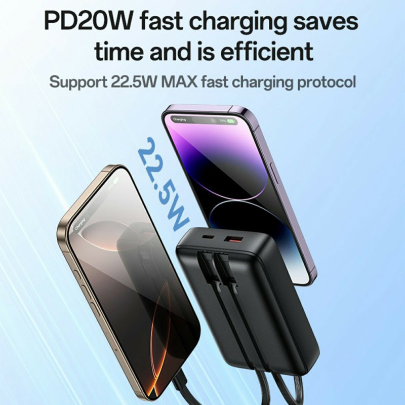 La fin de l'encombrement est enfin là. Cette Batterie Externe YESIDO YP85 résout les défis de l'autonomie et de la gestion des câbles en déplacement. Avec sa capacité colossale de 20000mAh, elle garantit de multiples recharges pour tous vos appareils. Le design intègre des câbles Type-C et Lightning, éliminant le besoin de transporter des fils supplémentaires. Elle délivre une puissance de charge rapide de 22.5W via ses sorties USB et son câble Type-C. La gestion intelligente de l'alimentation, associée au contrôle NTC, assure une charge sécurisée et efficace, et l'affichage numérique permet une surveillance constante de la capacité restante.
