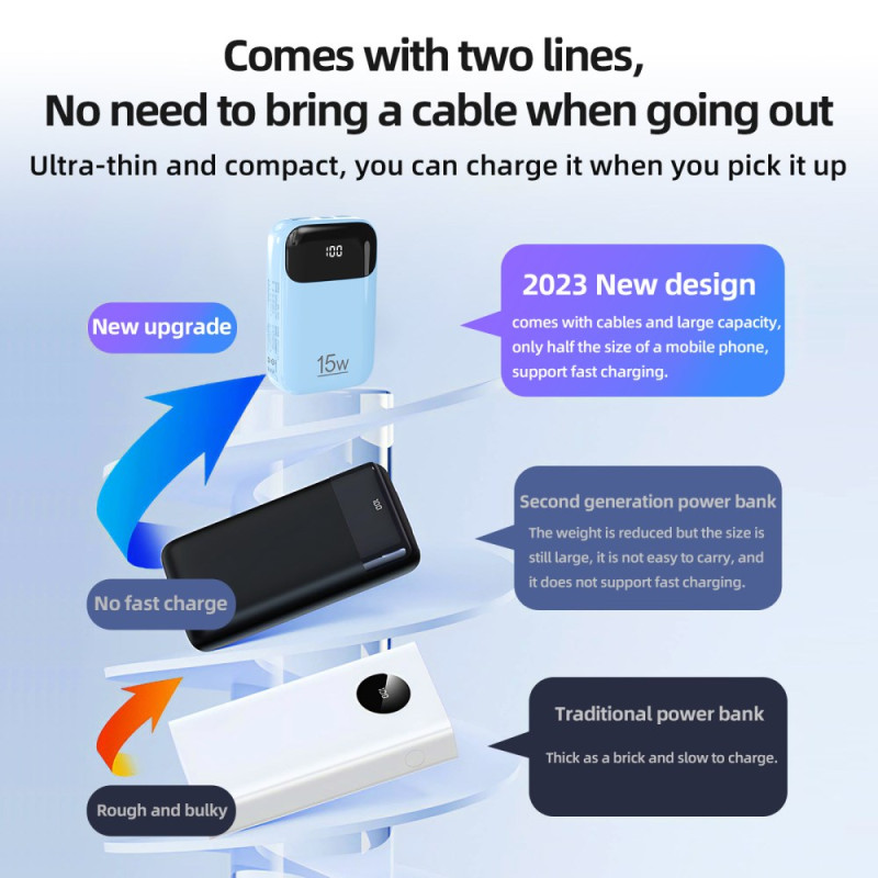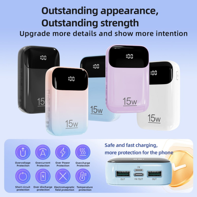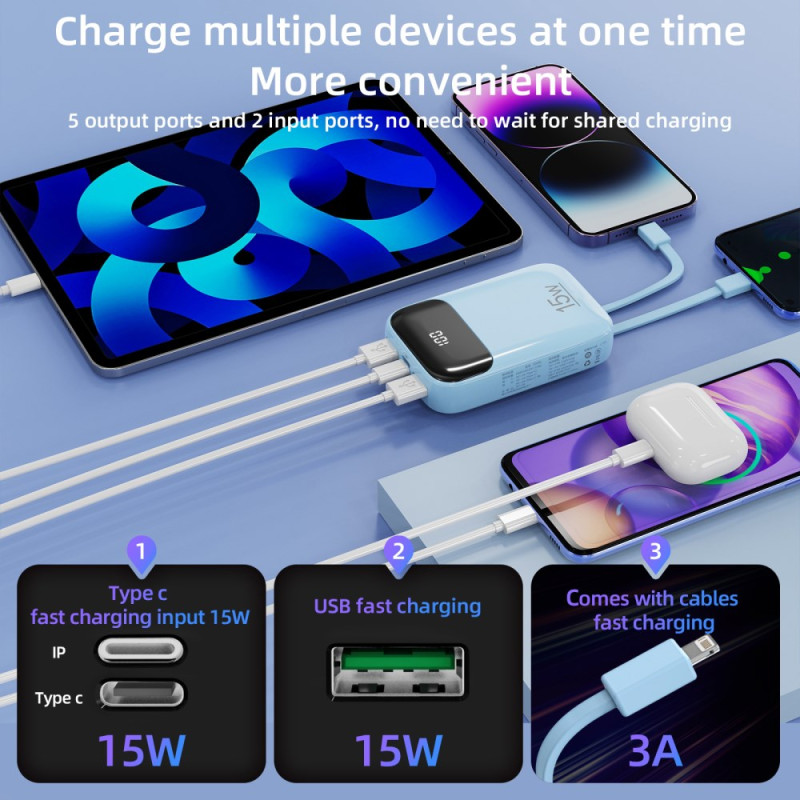 La dépendance aux câbles externes est éliminée grâce à cette Batterie Externe ROISKIN, conçue pour l'autonomie et l'efficacité partagée. Sa capacité colossale de 20000mAh garantit l'alimentation de multiples dispositifs pendant plusieurs jours. Le design intègre des câbles Type-C et Lightning (iP), offrant une compatibilité immédiate avec tous les écosystèmes. Avec ses cinq sorties disponibles (ports et câbles), cette unité permet le chargement simultané d'un grand nombre d'appareils. Sa construction en PC offre un toucher agréable et sa protection intelligente assure une utilisation fiable. Le dispositif est certifié CE-RoHS, confirmant sa conformité aux normes européennes.