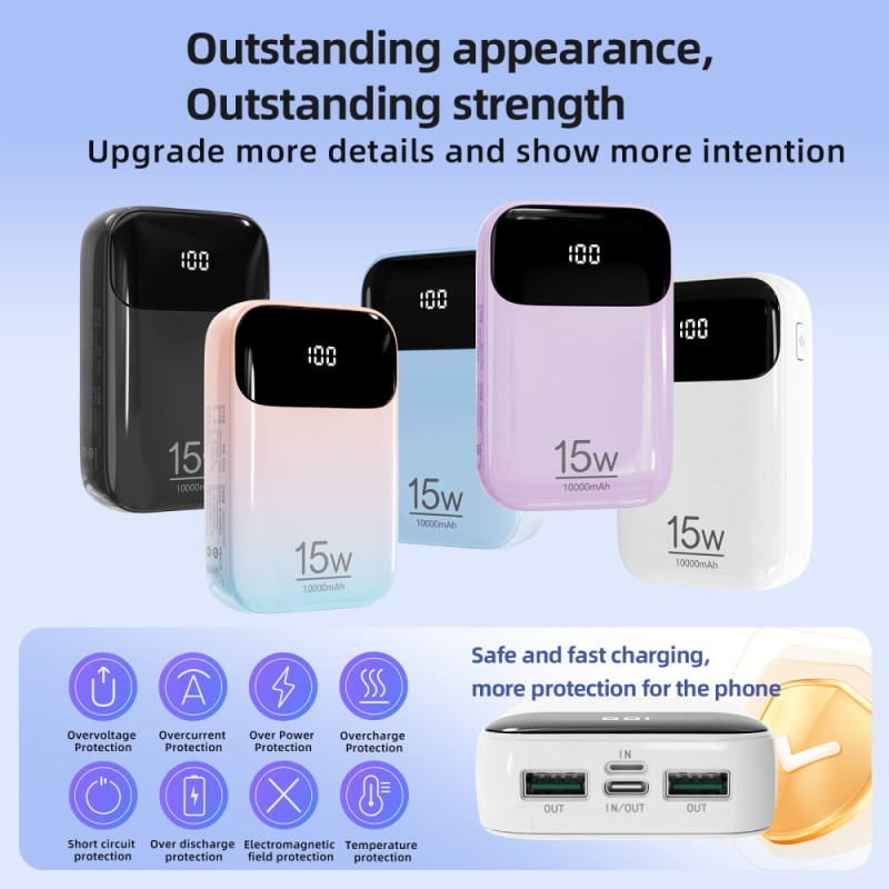 Le conflit entre la charge filaire et le confort de la prise en main est résolu par l'ingénierie ergonomique de cette unité ROISKIN. Cette Batterie Externe 10000mAh intègre deux câbles de charge (Type-C et Lightning) conçus pour un déploiement à 180 degrés, n'entravant jamais l'utilisation de l'appareil. Avec cinq sorties disponibles, elle permet la recharge simultanée de plusieurs dispositifs. La surveillance de l'autonomie est facilitée par un grand écran numérique clair. Le dispositif est sécurisé par neuf niveaux de protection intelligents et est conforme aux normes européennes CE-RoHS.