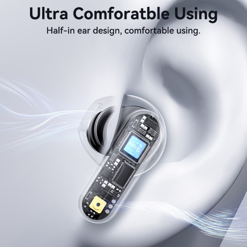 Les écouteurs YESIDO adoptent un format semi intra-auriculaire qui combine confort et polyvalence, adapté aussi bien à un usage professionnel qu’à une pratique sportive. Le boîtier de charge transparent permet de consulter immédiatement le niveau de batterie, offrant une gestion simple au quotidien. Les haut-parleurs de 13 mm assurent un son stéréo clair, tandis que les microphones garantissent des appels nets. L’autonomie atteint environ 4,5 heures par charge, et les commandes tactiles facilitent l’accès aux principales fonctions.