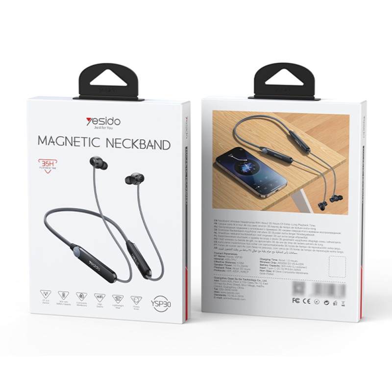 Ces écouteurs tour de cou YESIDO YSP30 adoptent une structure monobloc légère et ergonomique, assurant un port confortable durant de longues périodes. La connectivité Bluetooth 5.4, associée à la puce AB5656D à faible consommation, garantit une liaison stable et économe en énergie. Les haut-parleurs plaqués or de 13 mm offrent un son immersif et précis. La molette rotative permet un contrôle intuitif du volume et de la lecture. La batterie de 350 mAh offre plus de trente-cinq heures d’autonomie, idéale pour les professionnels comme pour les déplacements