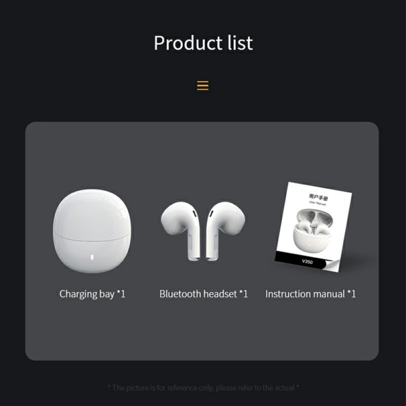 Les écouteurs Bluetooth V350 offrent une restitution sonore de haute fidélité grâce à leurs haut-parleurs F13 à membrane composite, capables de produire un son dynamique et immersif. La connexion Bluetooth 5.3 + EDR assure une transmission fluide, une latence réduite et un positionnement sonore précis, idéal pour la musique comme pour le gaming. L’ouverture du boîtier déclenche automatiquement l’appairage, facilitant l’utilisation au quotidien. L’autonomie atteint jusqu’à quatre heures, prolongée par un boîtier de 200 mAh. Les commandes tactiles permettent une gestion intuitive des appels et de la lecture.