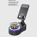 Découvrez ce support multifonction 3-en-1 : enceinte Bluetooth haute qualité, batterie externe 2000mAh et support téléphone ajustable 360°. Avec éclairage d'ambiance intégré pour créer une atmosphère unique. Connexion stable jusqu'à 10 mètres.