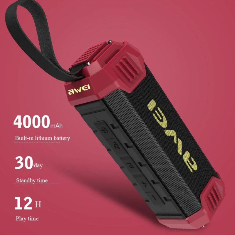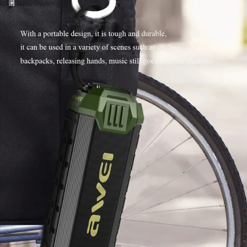 Profitez d'un son puissant de 16W avec l'enceinte portable AWEI Y280. Certifiée IPX4 résistante aux éclaboussures, elle offre 12 heures d'autonomie et supporte Bluetooth 5.3, carte TF, USB et radio FM. Parfaite pour vos aventures en extérieur.