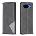 Étui élégant en cuir pour Google Pixel 10A avec motif géométrique raffiné. Dispose d'emplacements intégrés pour cartes bancaires et pièces d'identité, d'une fonction support pour visionnage mains libres et d'une fermeture magnétique sécurisée.