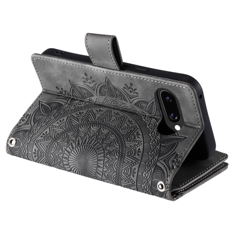 Étui portefeuille élégant pour Google Pixel 10A orné d'un motif fleur mandala. Conçu en cuir synthétique premium avec intérieur TPU, il offre une protection durable tout en ajoutant une touche de style unique à votre téléphone.