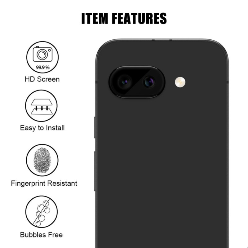 Protégez l'objectif de votre Google Pixel 10a avec ce film en verre trempé haute définition. Dureté 9H anti-rayures, revêtement oléophobe anti-traces de doigts, couverture intégrale et installation sans bulles. Transmission lumineuse optimale pour des photos.