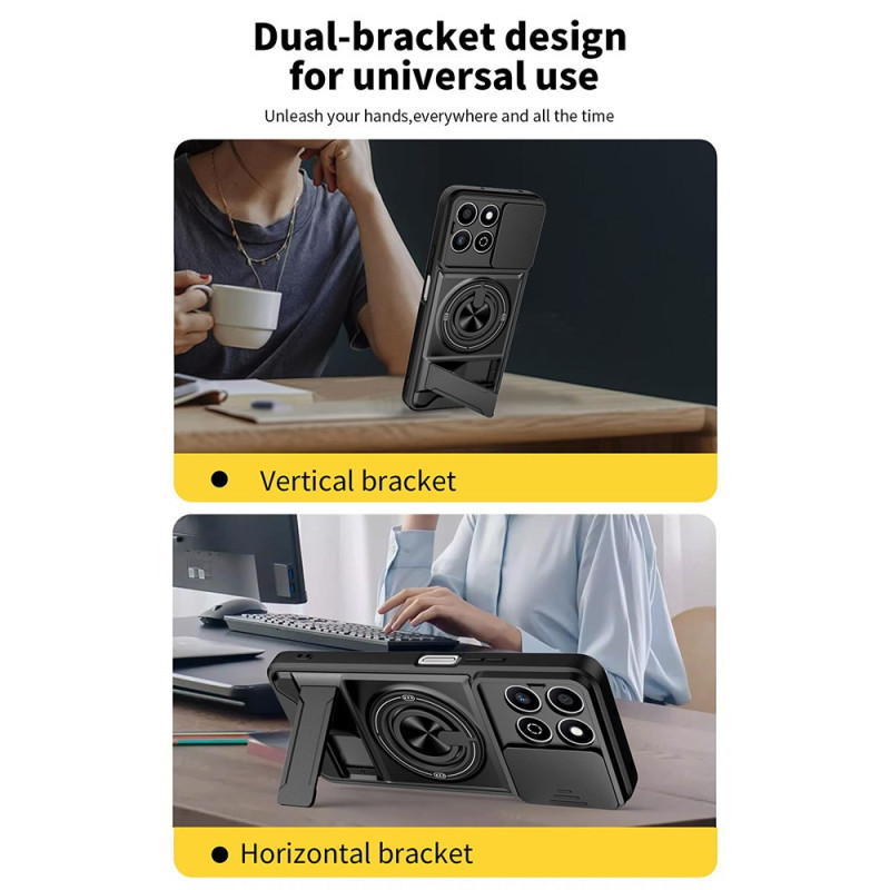 Protégez votre Honor X7c 5G / 4G / 200 Smart 5G avec style grâce à cette coque innovante. Double protection TPU/PC résistante aux chocs, anneau rotatif 360° intégré, support pliable pour visionnage mains libres et cache caméra coulissant pour une sécurité optimale...