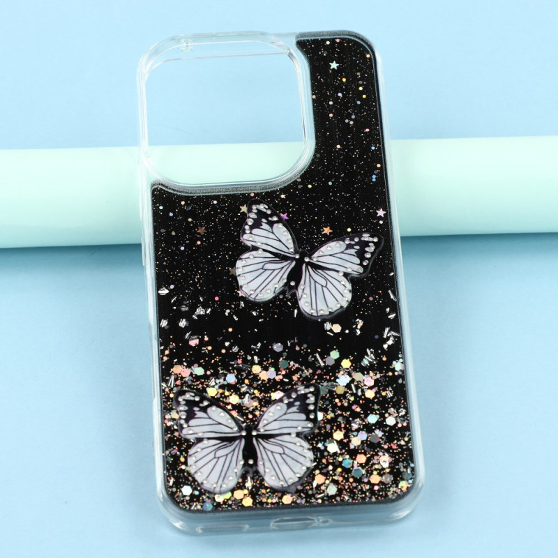 - Design époxy élégant avec fond étoilé orné d'accessoires papillon sophistiqués qui ajoutent charme et raffinement à votre téléphone