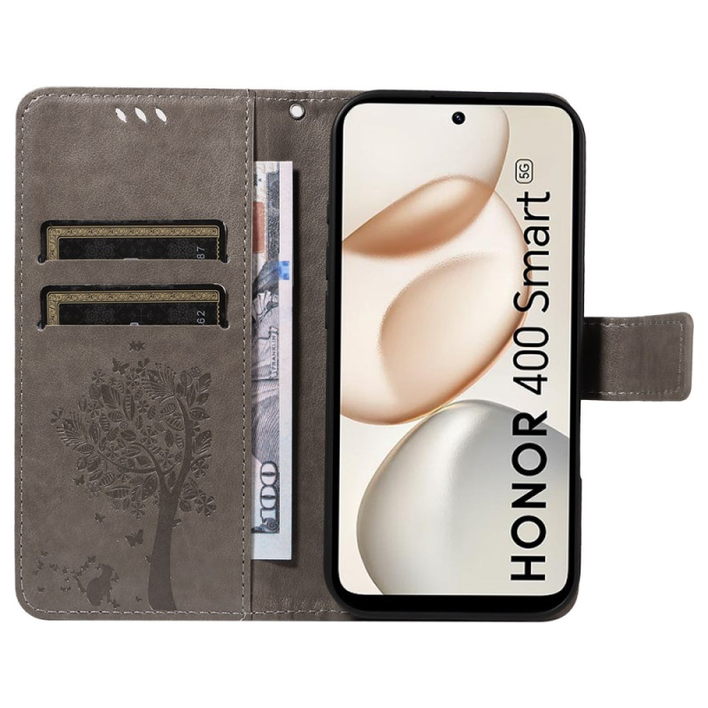 Découvrez notre élégante housse portefeuille pour Honor 400 Smart 4G. Fabriquée en cuir PU de haute qualité et dotée d'un motif chat et arbre imprimé, elle offre une protection robuste et un style unique. Avec ses fonctionnalités pratiques comme le support intégré, les fentes pour cartes et une dragonne, cette coque allie parfaitement fonctionnalité et esthétique.