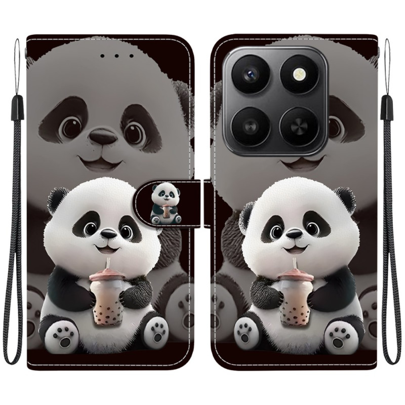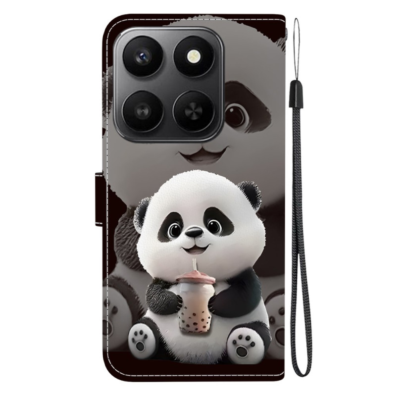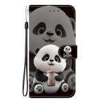 Élégant étui portefeuille avec motif adorable panda thé au lait. Support intégré pour visionnage mains libres, 2 emplacements cartes et compartiment billets. Fermeture magnétique sécurisée et dragonne détachable pour un transport facile au quotidien.