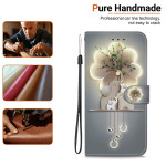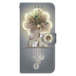 Étui portefeuille élégant avec motif trois éléphants imprimé. Fonction support intégrée pour visionnage mains libres, fermeture magnétique sécurisée, 2 emplacements pour cartes et compartiment latéral. Protection renforcée contre les chutes.