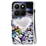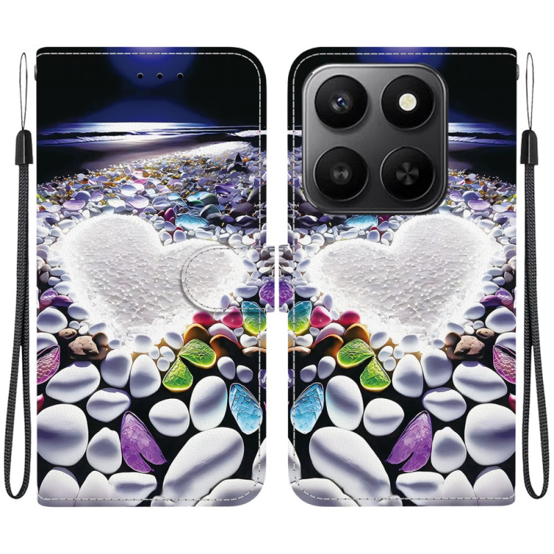 Étui élégant en cuir PU avec imprimé cœur, fonction support et fermeture magnétique. Comprend 2 emplacements pour cartes, un compartiment latéral et un cordon détachable. Protection renforcée contre les chocs et surface anti-traces.