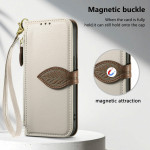 Découvrez cet étui en cuir PU élégant avec fermoir magnétique décoratif en forme de feuille. Doté de 3 emplacements pour cartes, 1 poche pour espèces et une poche zippée extérieure, il allie style et fonctionnalité. La dragonne amovible et le support intégré offrent un confort d'utilisation optimal au quotidien.