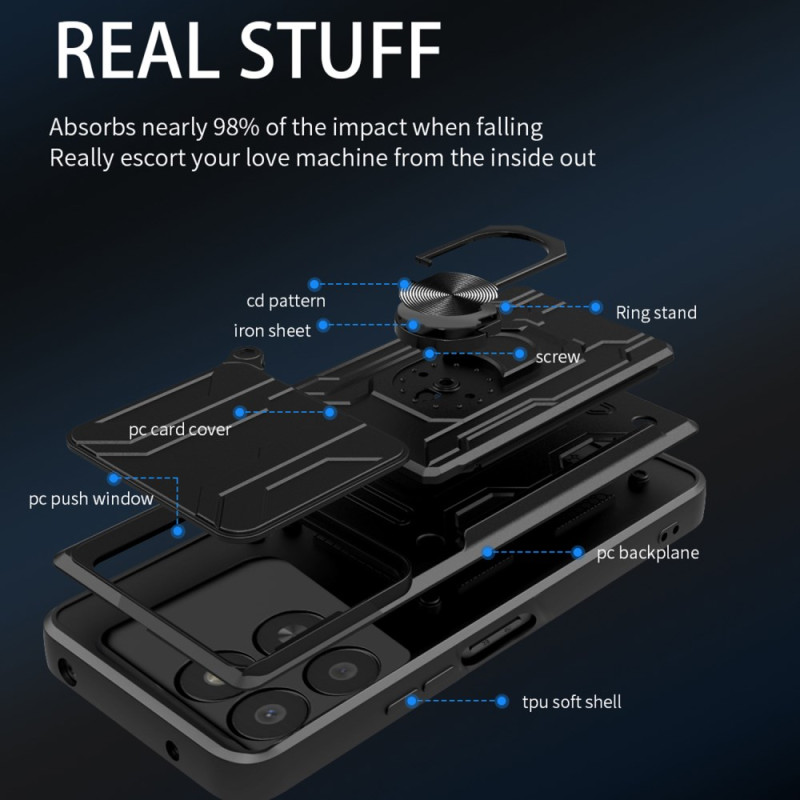 • Porte-cartes coulissant pratique au dos de la coque pour ranger vos cartes bancaires, carte d'identité ou titres de transport