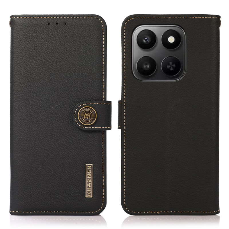 Découvrez l'étui portefeuille KHAZNEH en cuir de vache véritable pour Honor X7d et 400 Smart. Alliant élégance et fonctionnalité, il offre une protection RFID contre le vol de données, une fermeture magnétique ultra-résistante et un support pratique pour visionner vos contenus en toute liberté.