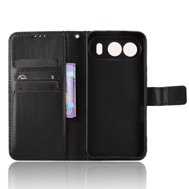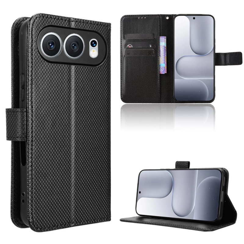 Étui portefeuille élégant pour Honor 500 5G avec texture diamant sophistiquée. Dispose de fentes pour cartes, poche pour espèces et dragonne pratique. Fermeture magnétique sécurisée et support pliable intégré pour un visionnage mains libres.