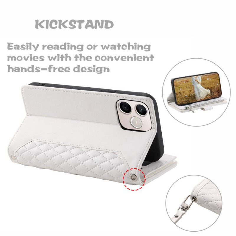 Son motif losanges cousu apporte une touche d'élégance incomparable, tandis que sa conception tout-en-un remplace votre portefeuille.