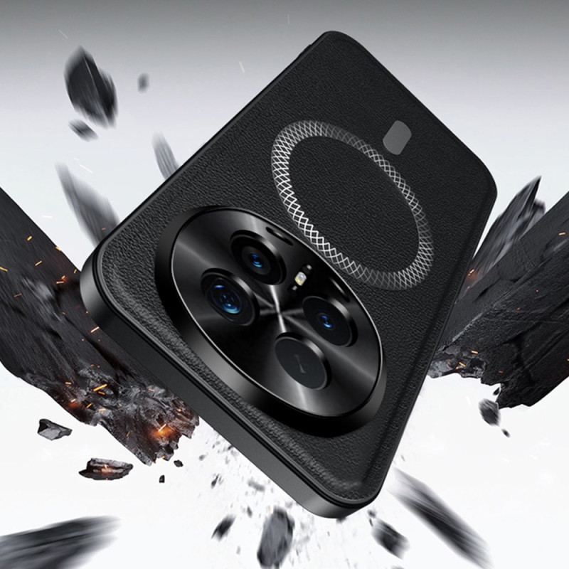 Coque premium compatible MagSafe pour Honor Magic 8 Pro 5G. Construction en PU, TPU et PC offrant protection optimale, design airbag antichoc, cadre métal pour objectif surélevé et découpes précises. Boutons indépendants et bords antidérapants.