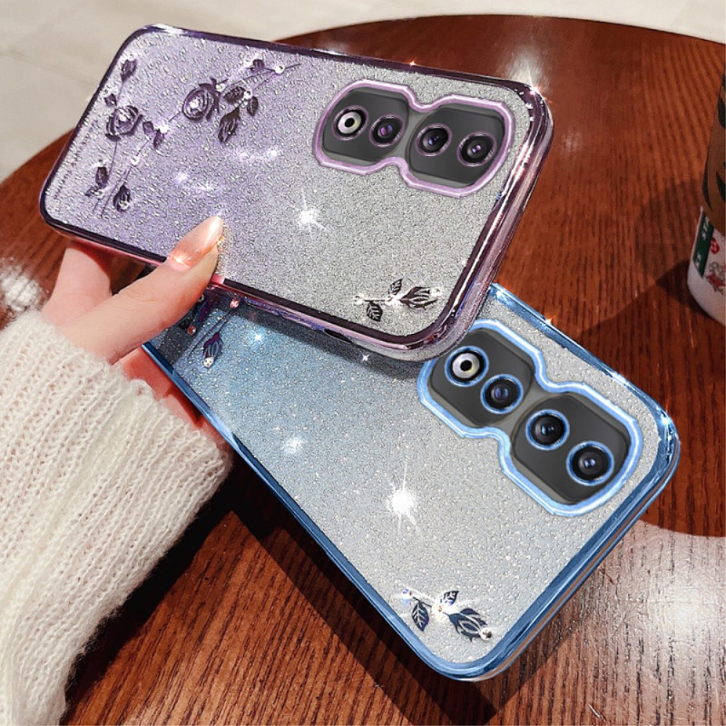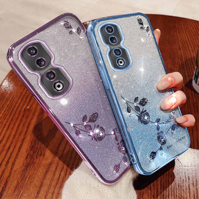 La coque Gradient Color avec paillettes et roses décoratives offre une protection exceptionnelle au Honor 90 Pro tout en préservant son design.