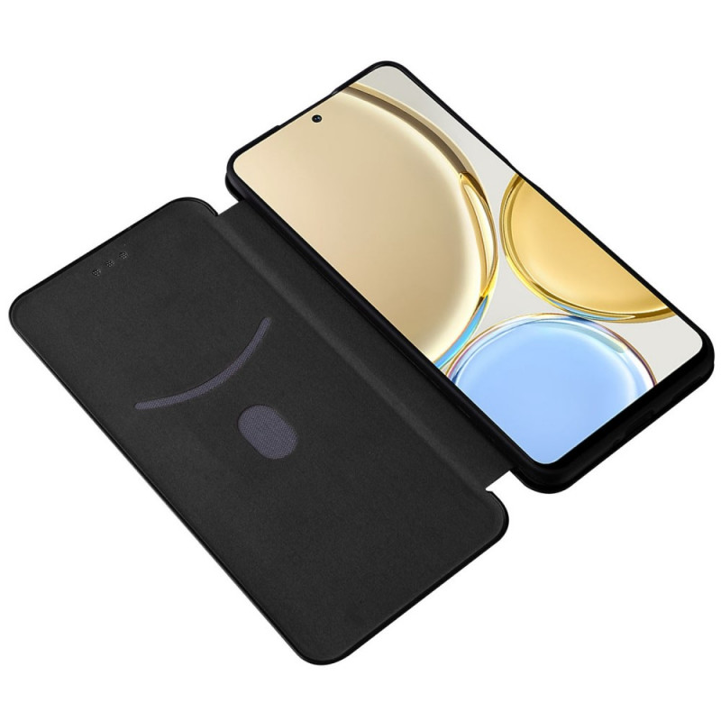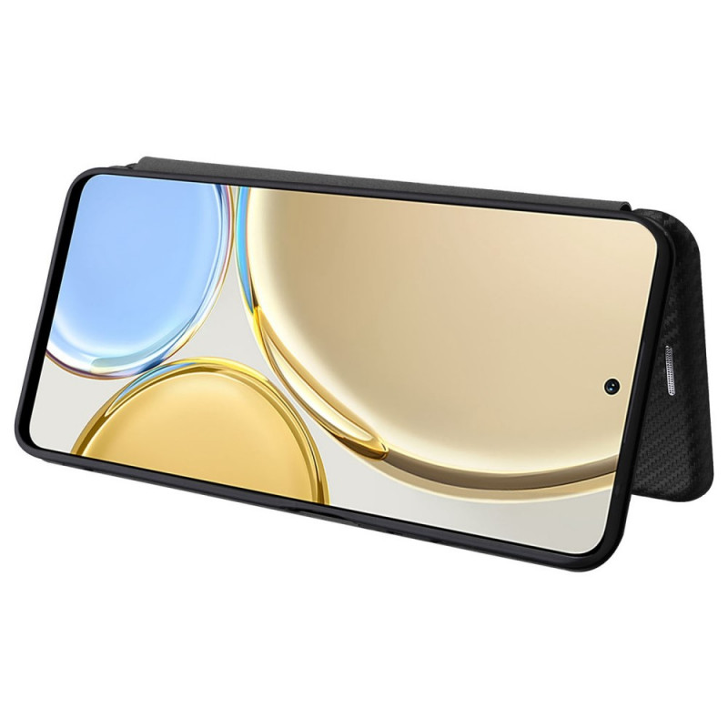 Choisissez cette flip cover à texture fibre carbone qui sécurise l'ensemble de votre Honor Magic 4 Lite 5G / X9 5G tout en étant pratique.