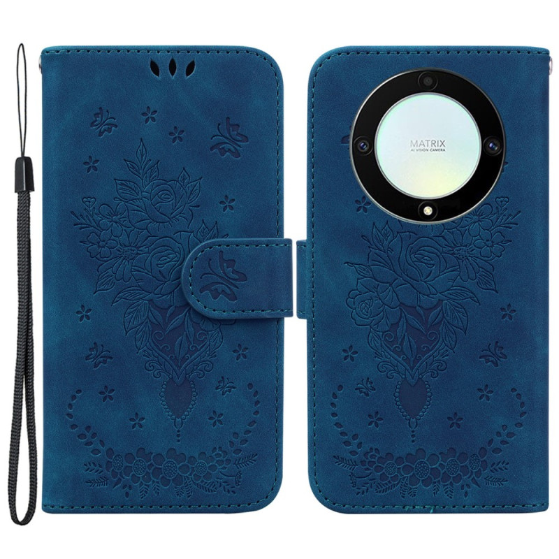 Votre Honor Magic 5 Lite 5G / X9a est magnifique avec cette housse décorée de roses et de papillons qui vient avec une lanière.