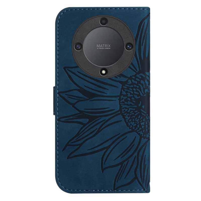 La housse en simili cuir aux motifs d'une fleur vient avec une bandoulière pour transporter le Honor Magic 5 Lite 5G / X9a facilement.