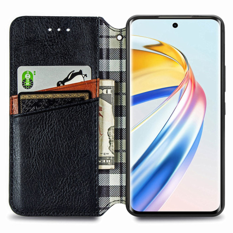 Découvrez notre étui magnétique pour Honor Magic 6 Lite 5G / X9b 5G, doté d'un motif losange imprimé.