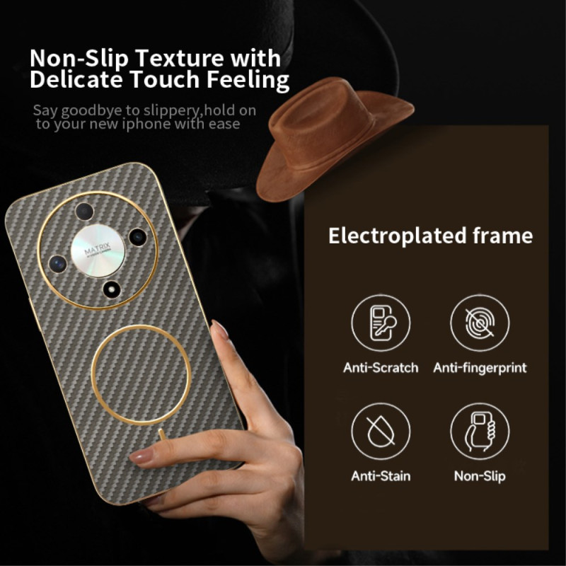 Protégez votre Honor Magic 6 Lite / X9b avec cette coque élégante en TPU à texture fibre de carbone. Finition électrolysée haut de gamme, résistante aux traces de doigts et compatible avec les chargeurs magnétiques pour une protection optimale.