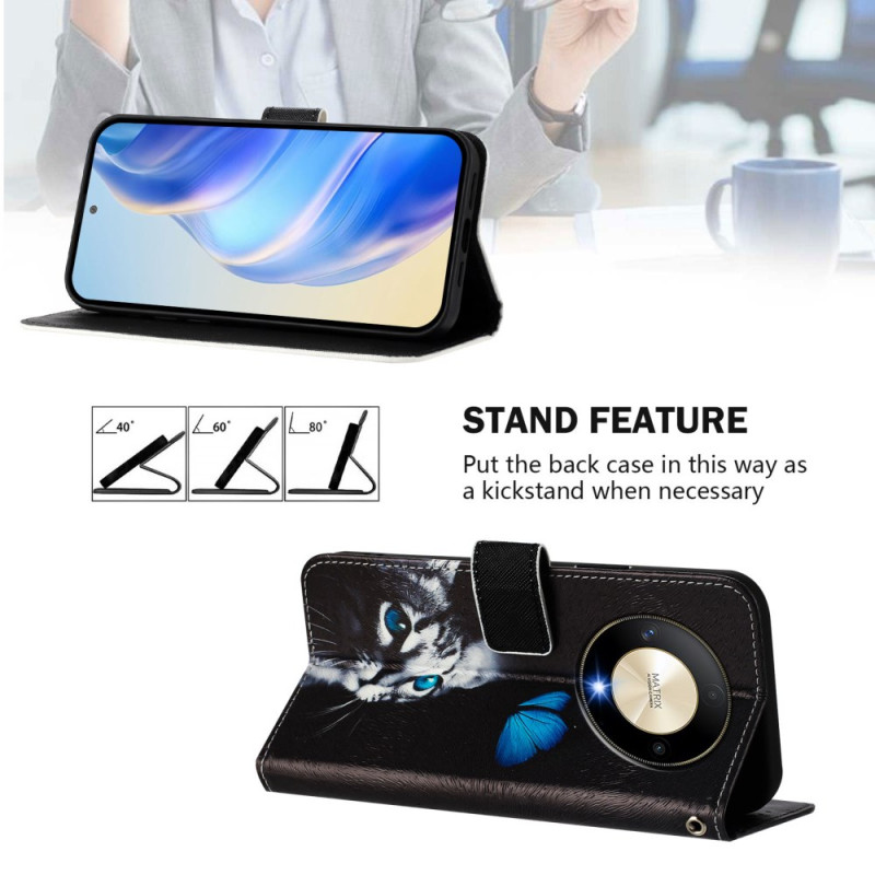 Étui portefeuille élégant avec un charmant motif papillon et chat. Comprend un support ajustable multi-angles, 3 emplacements pour cartes, une dragonne sécurisée et une protection renforcée contre les chutes.