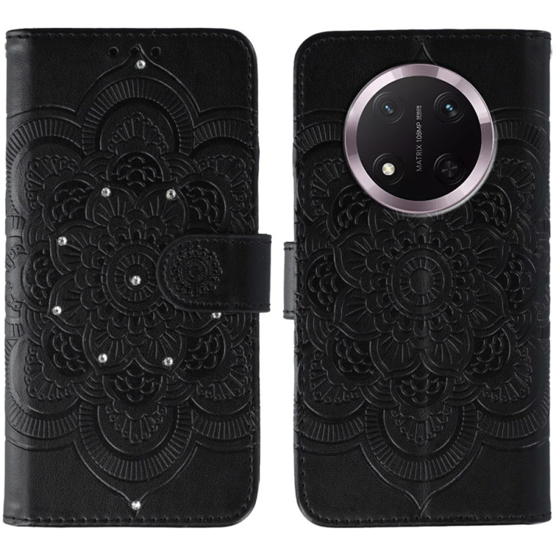 Protégez votre Honor Magic 7 Lite / X9c avec élégance grâce à cette coque raffinée ornée d'un motif mandala imprimé et de strass scintillants. Dotée de compartiments pour cartes et argent, d'une fonction support et d'une dragonne pratique, elle allie style et fonctionnalité au quotidien.