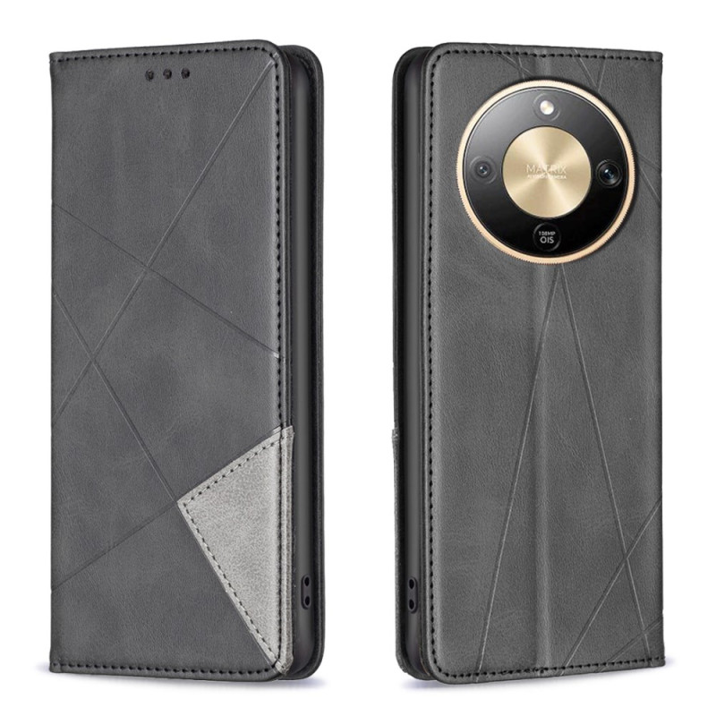 Protégez votre Honor Magic 8 Lite / X9d avec élégance grâce à cet étui en cuir à motif géométrique. Doté de porte-cartes intégrés et d'une fermeture magnétique sécurisée, il se transforme en support de visionnage pour un confort optimal au quotidien.
