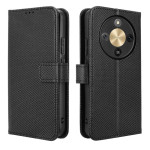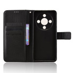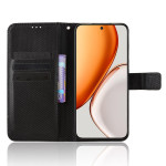 Étui portefeuille élégant avec texture diamant pour Honor Magic 8 Lite / X9d. Doté de fentes pour cartes, d'une poche pour espèces et d'une dragonne pratique. Fermeture magnétique sécurisée et support pliable intégré pour un visionnage mains libres optimal.