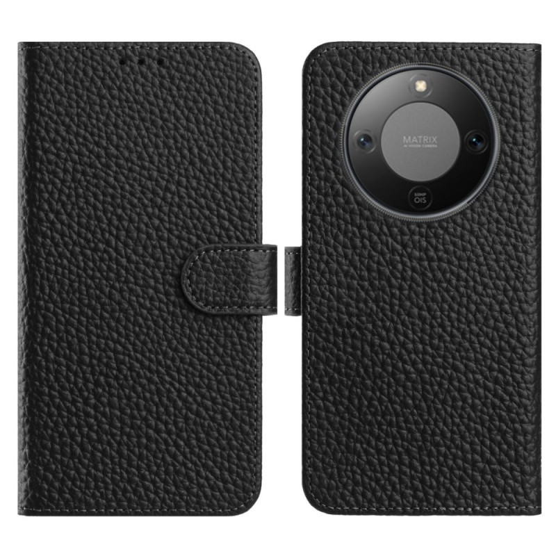 Étui portefeuille élégant pour Honor Magic 8 Lite en cuir véritable texture litchi. Offre une protection optimale contre les chocs grâce à ses coussins d'angles renforcés. Inclut 3 emplacements pour cartes, une poche pour billets et un support ajustable pour un visionnage confortable.