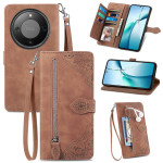 Étui portefeuille multifonction en cuir PU avec motif floral élégant. Doté de multiples emplacements pour cartes, d'une poche zippée extérieure, d'un support de visionnage intégré et d'une dragonne pratique. Protection complète contre les rayures et les chutes.