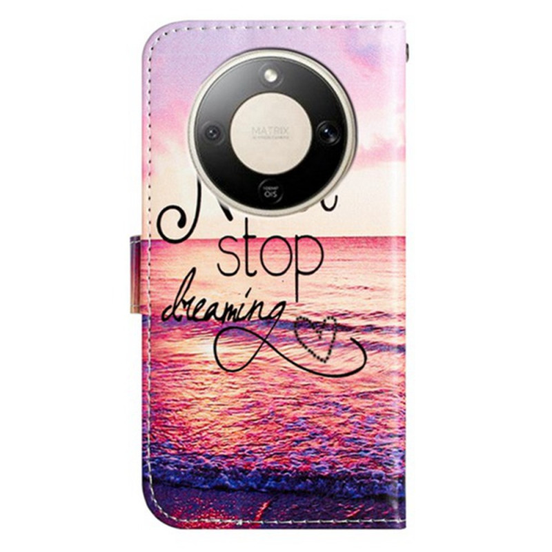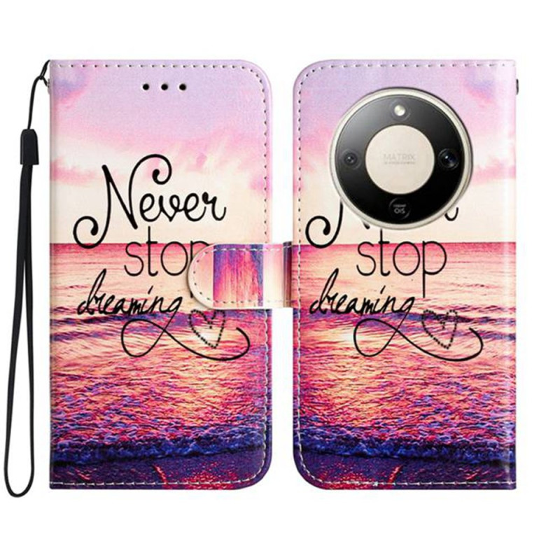 Protégez votre Honor Magic 8 Lite / X9de avec style grâce à cet étui portefeuille élégant au motif inspirant "Never Stop Dreaming". Doté de 3 emplacements pour cartes, d'une poche latérale et d'une fonction support réglable, il allie praticité et protection.