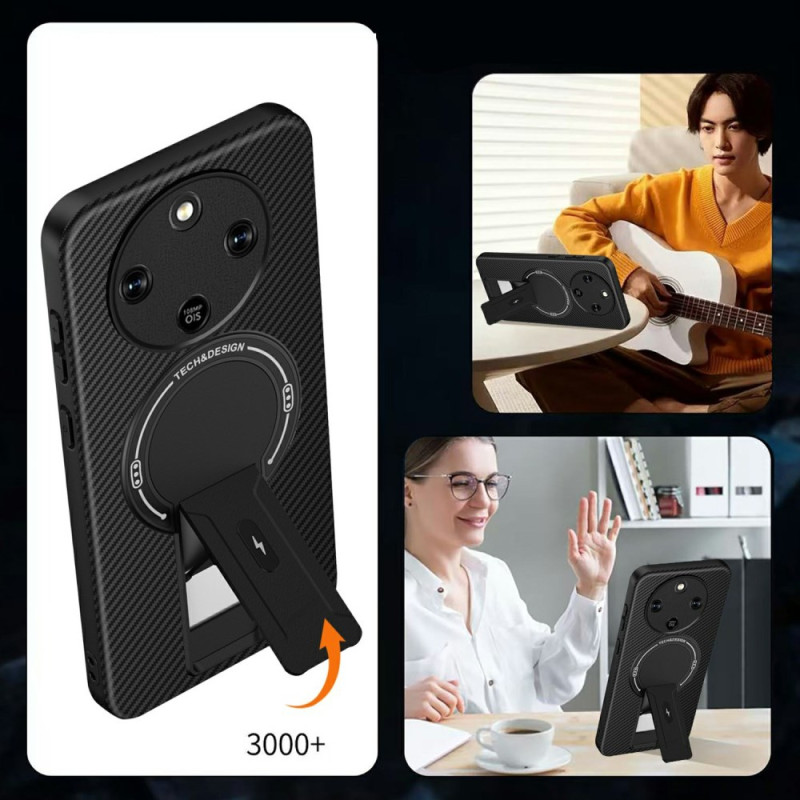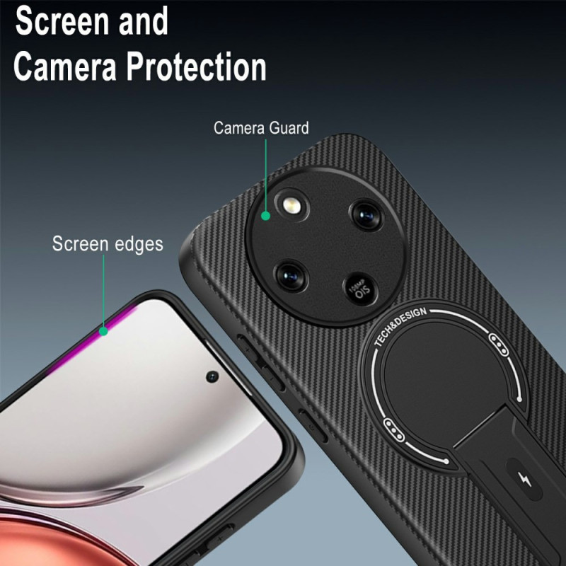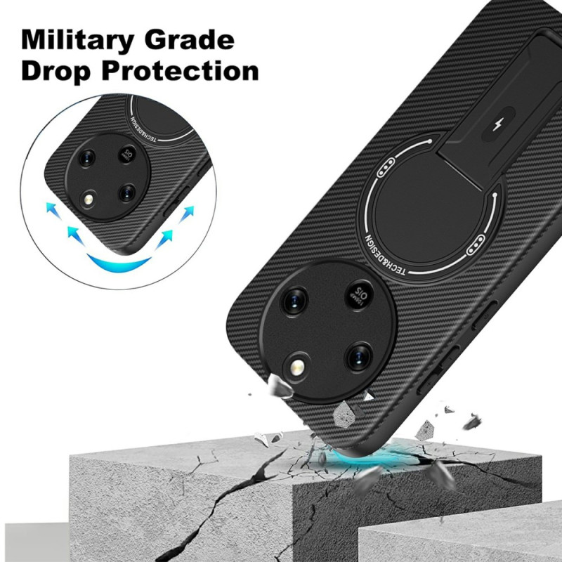 Coque hybride ultra-protectrice pour Honor Magic 8 Lite / X9d avec texture fibre de carbone, support intégré et protection anti-choc renforcée. Compatible support magnétique voiture et design anti-surchauffe.
