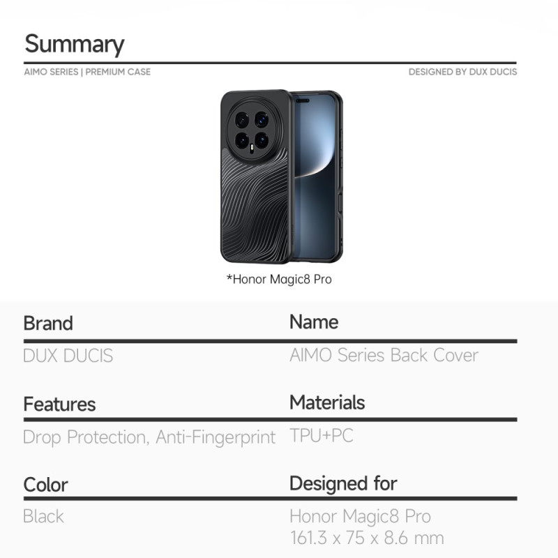 Protégez votre Honor Magic 8 Pro 5G avec élégance grâce à la coque DUX DUCIS Aimo Series. Sa conception hybride offre une protection robuste contre les chutes jusqu'à 1,2m, certifiée SGS.