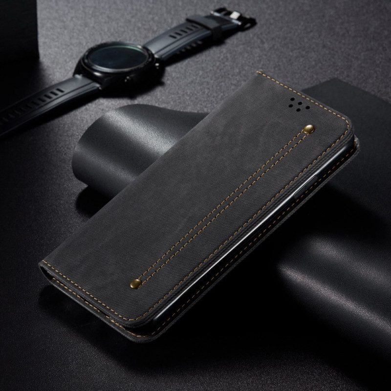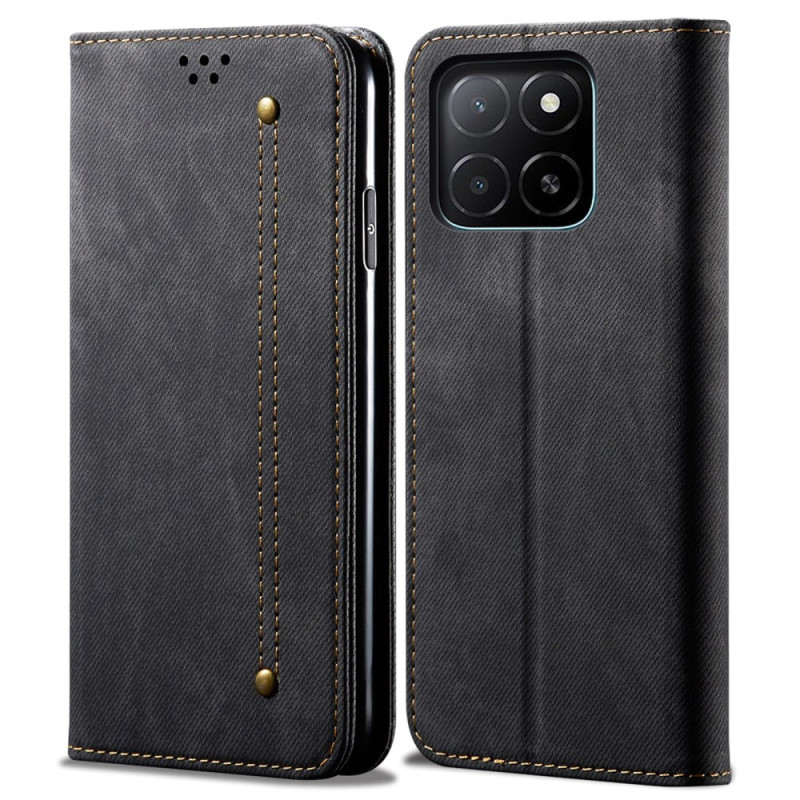 Étui élégant en cuir PU avec texture jeans rétro pour Honor X5b Plus / X5b. Design portefeuille avec 2 emplacements pour cartes et poche latérale. Support mains-libres intégré et fermeture magnétique pour une protection complète de votre téléphone.