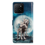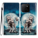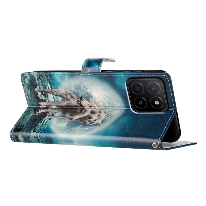 Étui portefeuille élégant avec motif deux loups pour Honor X5b / X5b Plus. Design sophistiqué avec support intégré, fermeture magnétique sécurisée et dragonne pratique. Comprend 3 fentes pour cartes et 1 poche pour espèces.